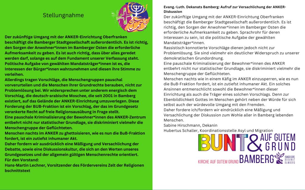 Der Migrantinnen- und Migrantenbeirat (MiB) der Stadt Bamberg äußert sein tiefes Bedauern und seine Besorgnis über die jüngsten Vorschläge der Stadtratsfraktion “Bambergs unabhängige Bürger” (BuB) bezüglich des Ankerzentrums (AEO) in Bamberg.